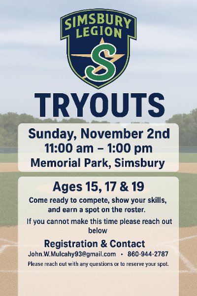 Simsbury American Legion Tryouts - U19, U17, U15 - 2025 Season